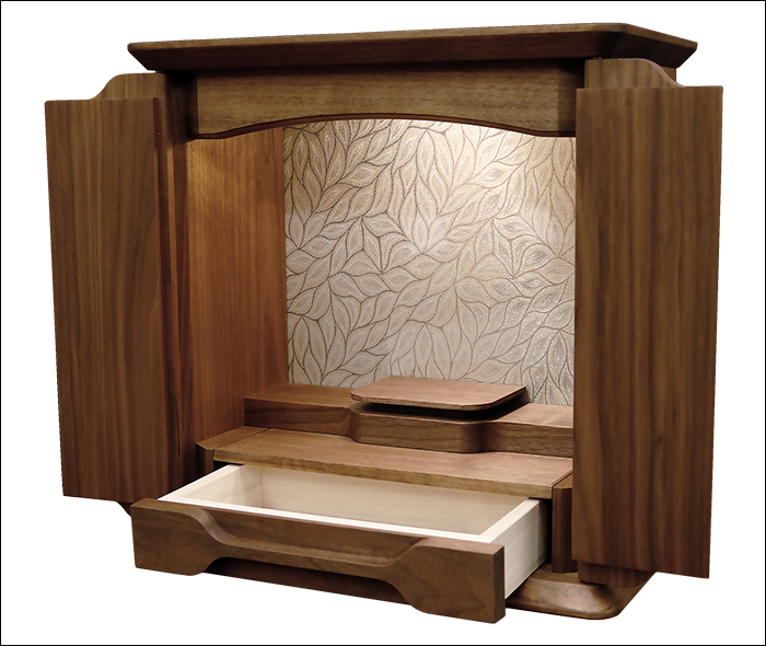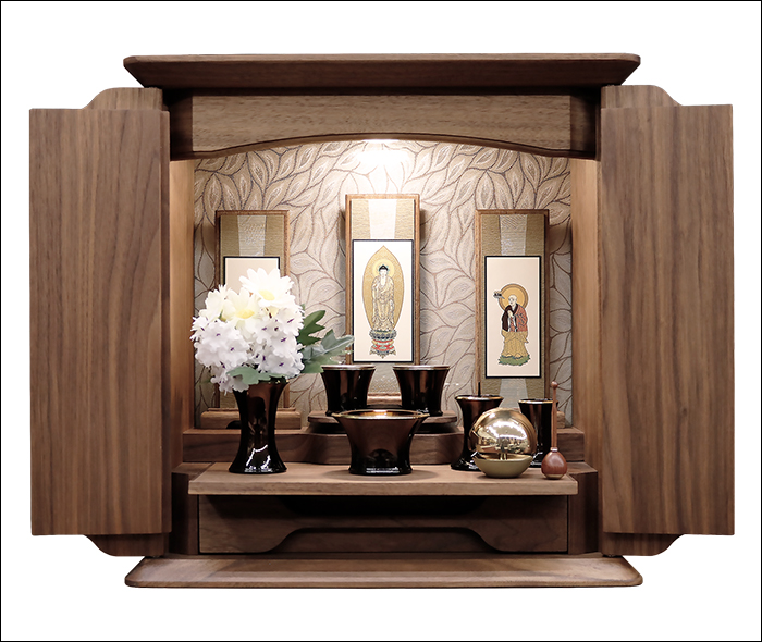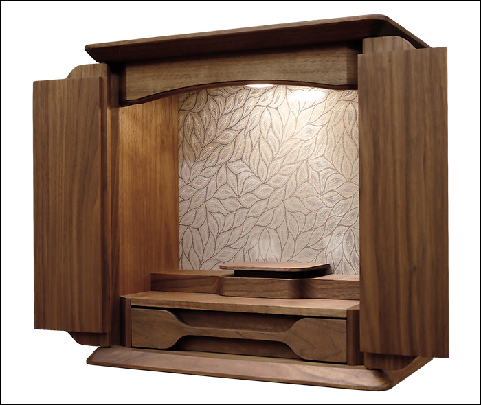 ウォールナットの無垢材で製作されたコンパクトなお仏壇です。