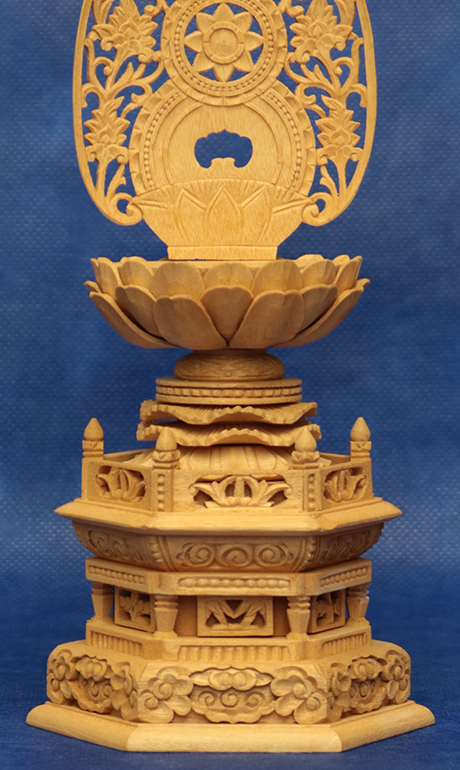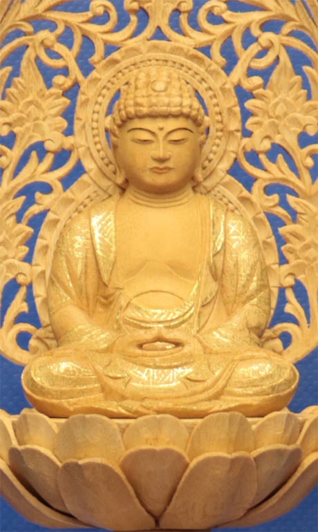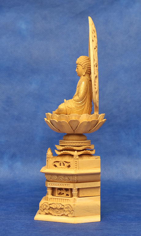 【送料無料 金泥書きの高級仏像】曹洞宗 仏壇ご本尊 木彫仏像 唐草光背 座像 六角台座【曹洞宗 釈迦如来(座像) 楠1.8寸~3.0寸】